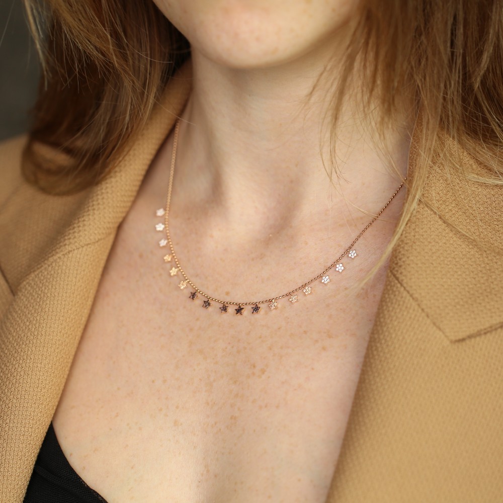 14 ayar yeşil altın yıldız kolye, Swarovski şeffaf, siyah ve sitrin taşlarıyla bezenmiş starry tasarım ile dikkat çeker. Şıklığınıza ışıltı katacak bu özel tasarım, yıldız motifli detaylarıyla zarif bir görünüm sunar. İtalyan tasarımı zincir ile tamamlanan bu kolye, 44 cm uzunluğu ile her tarzda rahatça kullanılabilir.