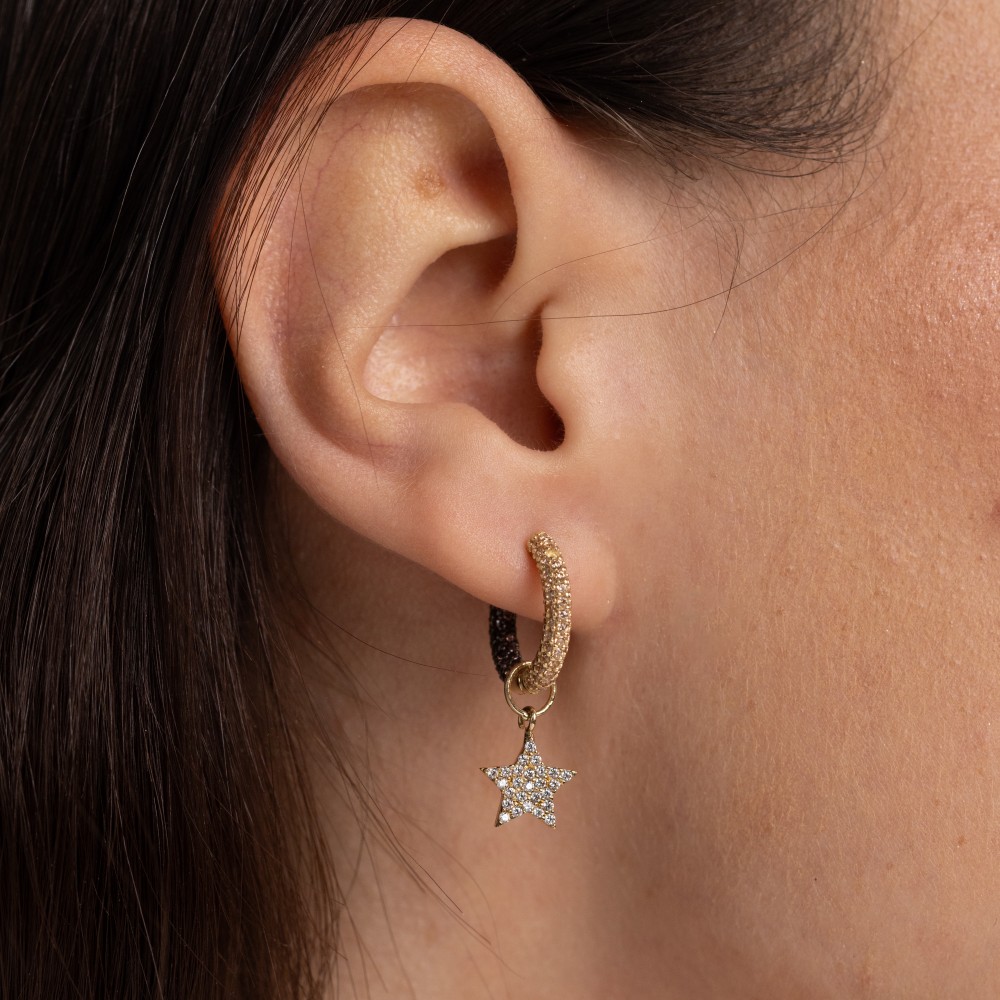 Diana 14 ayar altın küpe, mitolojinin zarafetini modern takı tasarımıyla buluşturan bir şaheserdir. Roma mitolojisindeki avcılık ve ay tanrıçası Diana'nın asaletinden ilham alan bu özel tasarım, 14 ayar altının kalitesiyle birleşerek sofistike bir aksesuar sunar.