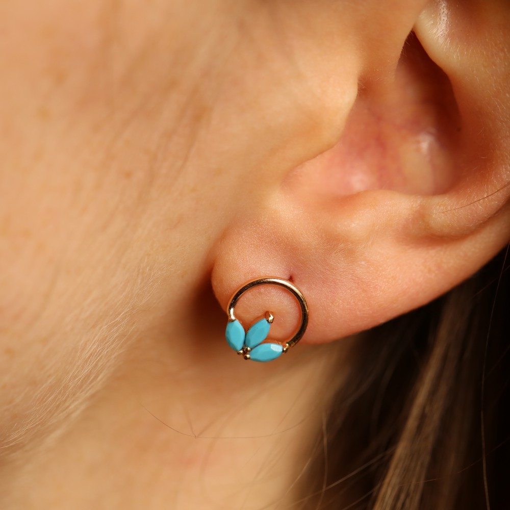 - Taşlar: Markiz kesim firuze taşları, küpenin her hareketinde zarif bir renk ve ışıltı sunar.