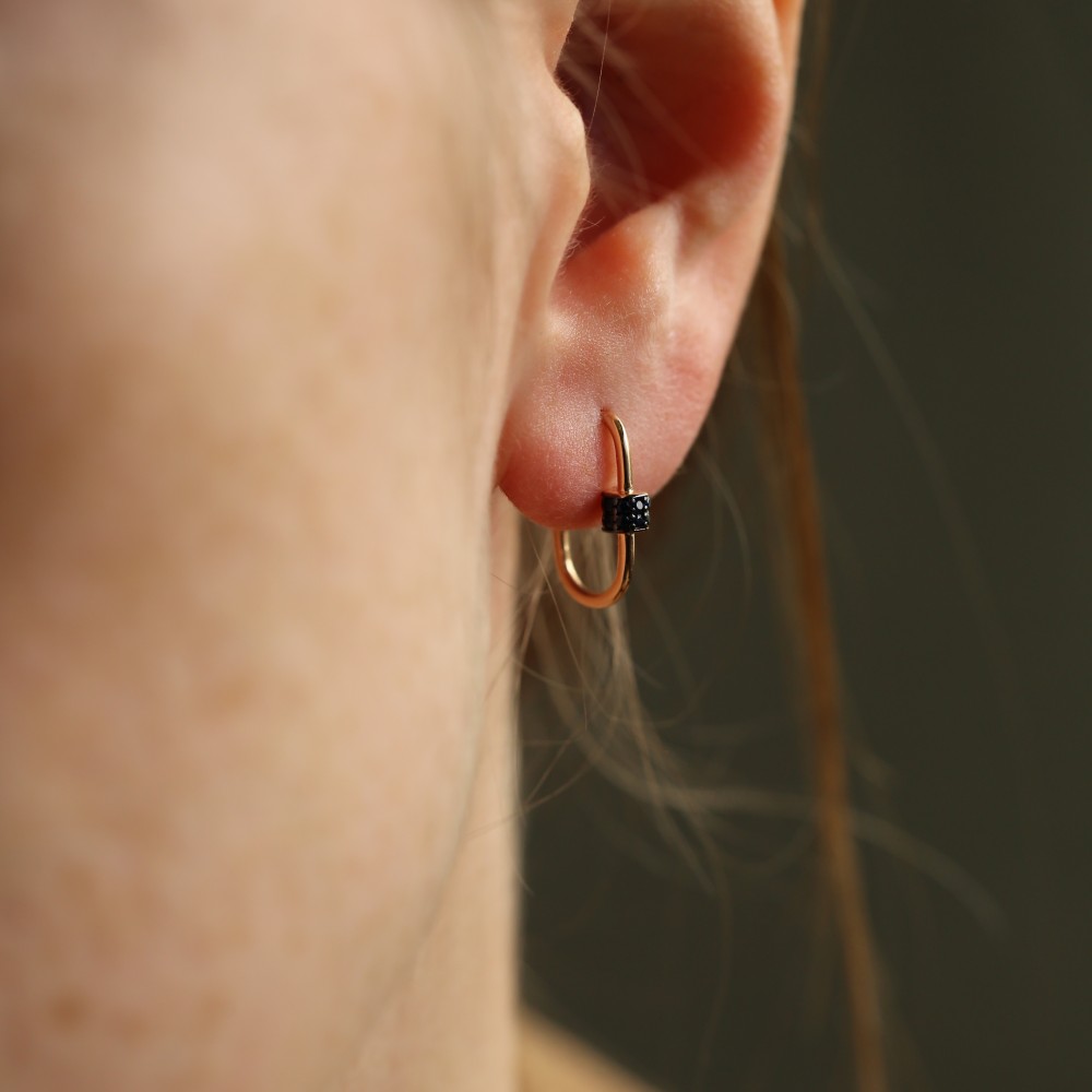 14 ayar altın ve oniks taşının birleşimi, bu küpeyi şıklığından ödün vermeyenler için mükemmel bir seçenek haline getirir. Minimal tasarım, her türlü kombinle uyumlu olup, zarif bir görünüm sunar.